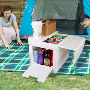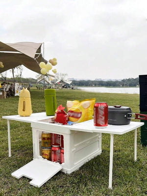 Si vous souhaitez plier cette table de pique-nique ou de camping, vous pouvez l'emporter à n'importe quel endroit grâce à sa taille idéale. Lors du dépliage, vous pouvez insérer les pieds et cela devient une belle table de pique-nique ou de camping avec une boîte de rangement pour mettre votre nourriture ou vos boissons !